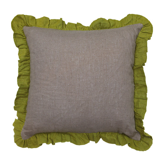 Block Frill Filled Cushion 45cm - Grey with Olive Frill - COVER ONLY