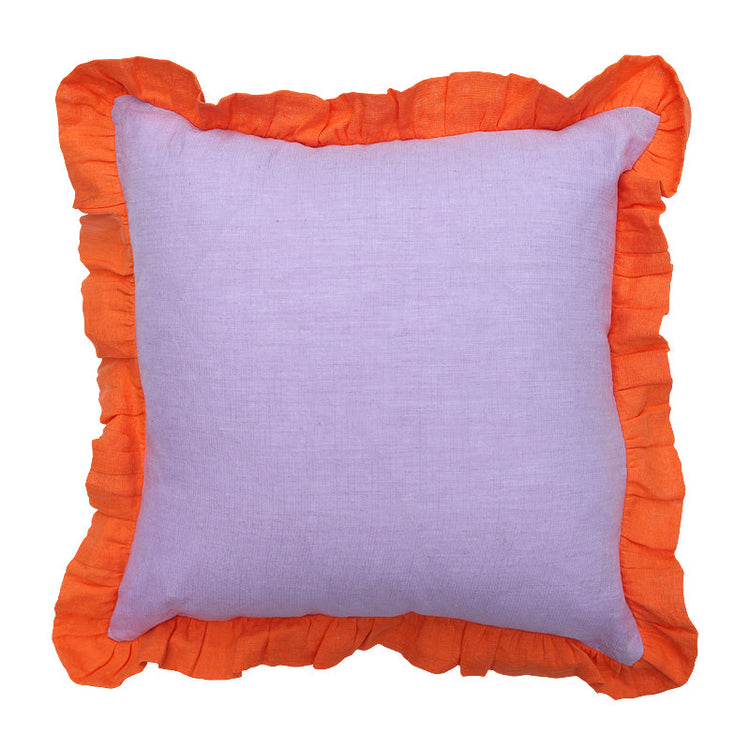Block Frill Filled Cushion 45cm - Lavender with Orange Frill - COVER ONLY