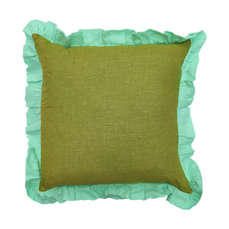 Block Frill Filled Cushion 45cm - Olive with Aqua Frill - COVER ONLY