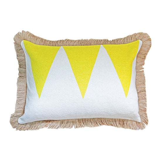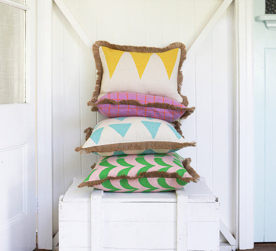 Our outdoor cushions have a water repellant coating. Please note however, the fabric is not waterproof. To ensure the quality is maintained, we advise that you bring undercover or indoors after use. Spot clean by brushing off loose dirt and using a soft sponge with mild detergent and lukewarm water. The fabric is a natural fibre and imperfections are part of its character. Minor shedding of the jute trim is to be expected.