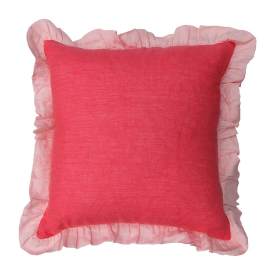 Block Frill Filled Cushion 45cm - Strawberry with Pink Frill - COVER ONLY
